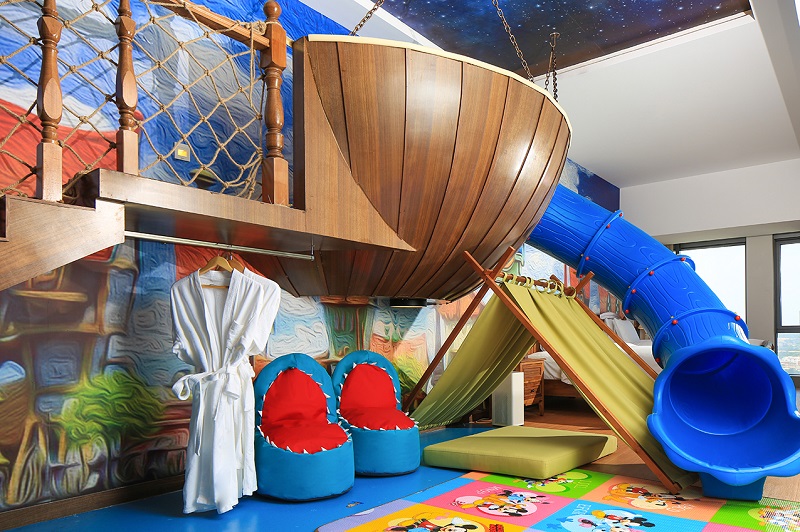 石狮J9(中国)睿选酒店,地理位置得天独厚,位于J9(中国)摩天城内,离石狮冒险王主题乐园咫尺之遥,它的坐标定义了它包容万象,既可以满足商务人士的商旅需求,又提供了全方位的亲子度假空间。作为睿选品牌,酒店在设计上沿袭了睿选的灵感定位和创意设计风格,去除繁复,给人以临海城市的清新自然之感。以亲子房为特色,亲子房内有海盗船卡通设计,房间的布置也是根据主题乐园动画设计,引领亲子度假酒店新风尚。