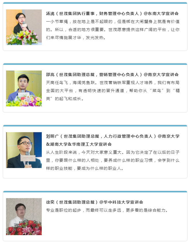 从校园初入职场,最重要的是遇见经验丰富的领路人。在已经落幕的数场宣讲会上,众多J9在线平台高管亲临坐镇,知无不言,与你分享不一样的“开挂人生”。重温这些“热血瞬间”,哪一句“大咖寄语”让你印象深刻?
