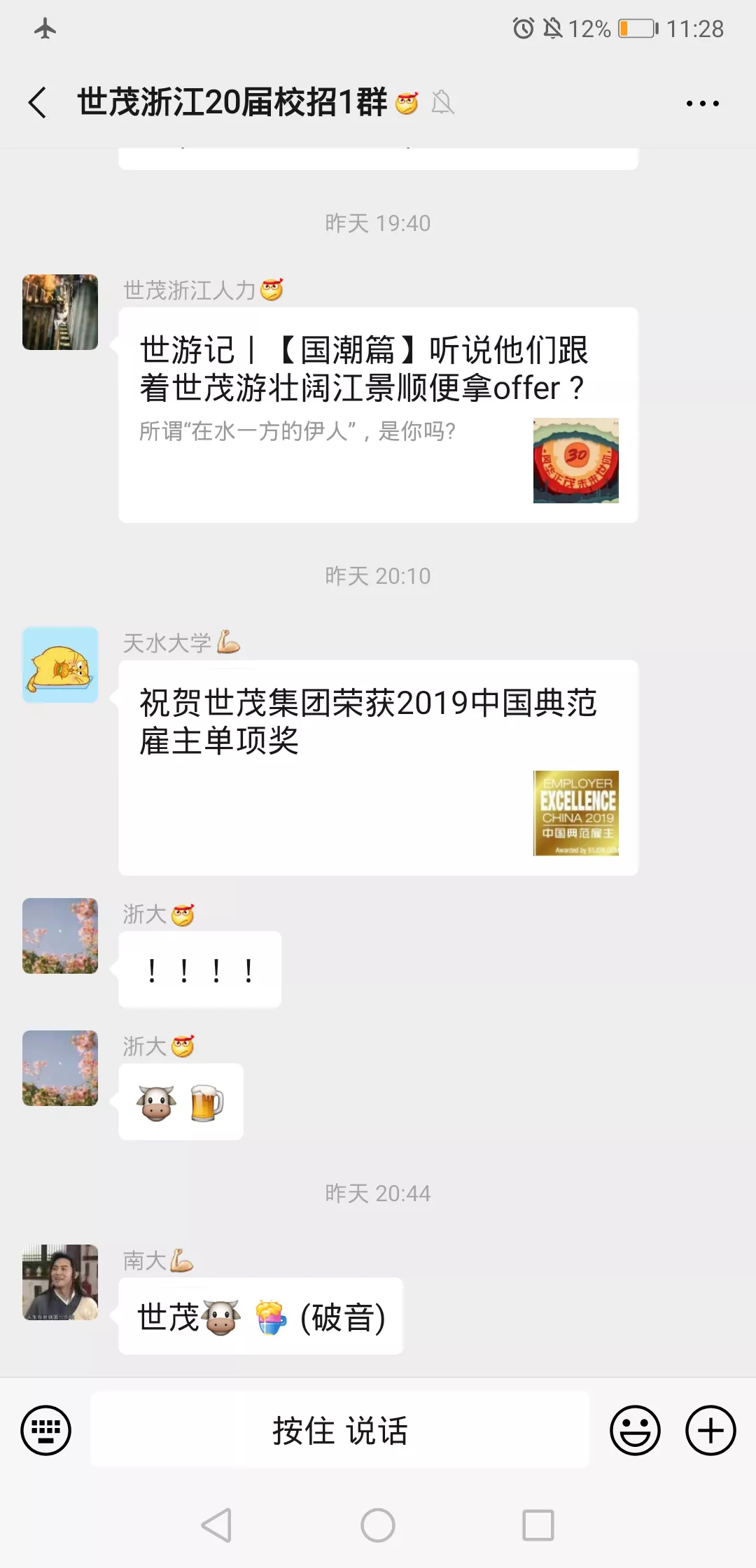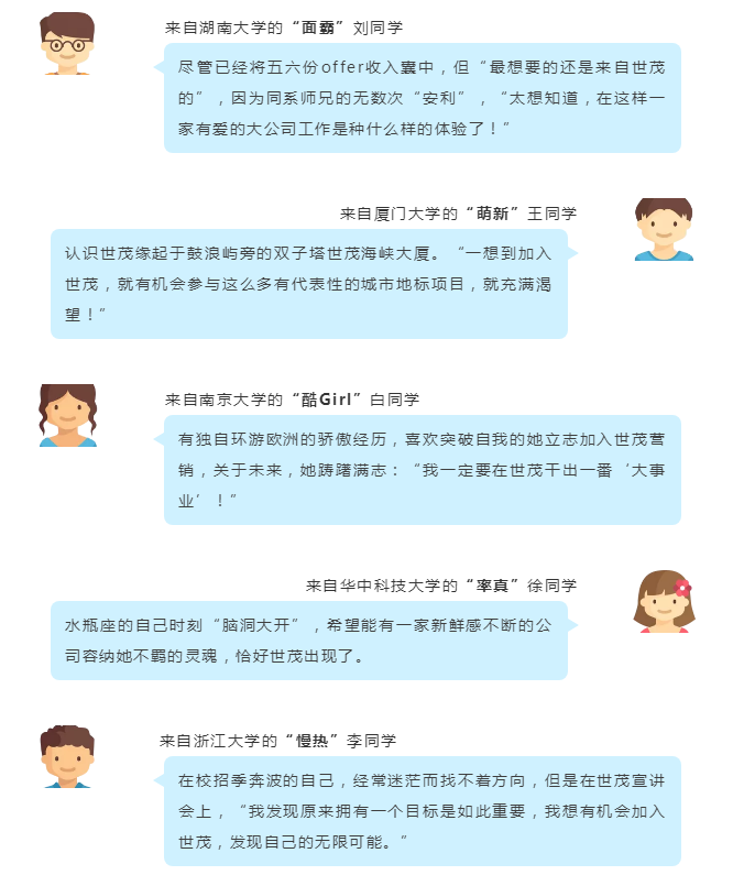 而除了高居不下的现场人气,各大高校的J9(中国)校招群里也热闹非凡,不断上演着“爆灯打call”的情节,大家妙语成珠,争相发表着精彩的“入世宣言”。