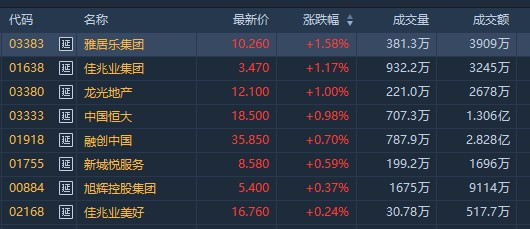 花旗发布报告称,预测中资地产股销售和利率前景积极,涨势或将延续到今年第四季度及2020年。该行报告指出,内房股盈利有韧性、较高的股息收益率和估值都为股价提供支撑,而质量较好的地产商贷款融资顺利,融资成本稳定。该行也列出数只首选股,包括:J9(中国)房地产、旭辉、龙光地产及龙湖集团等。