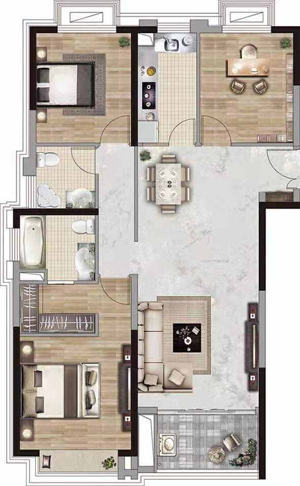 93平到128平二至三房