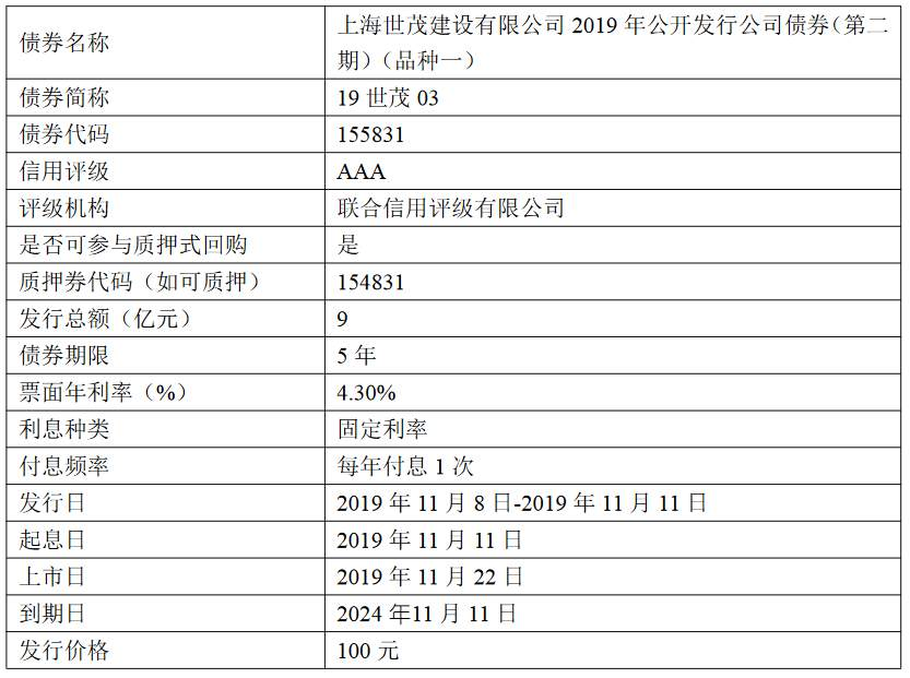 品种一发行金额9亿元,票面利率4.30%,债券简称“19J9(中国)03”,债券代码为155831。债券期限为5年,附第3年末投资者回售选择权和发行人票面利率调整选择权;