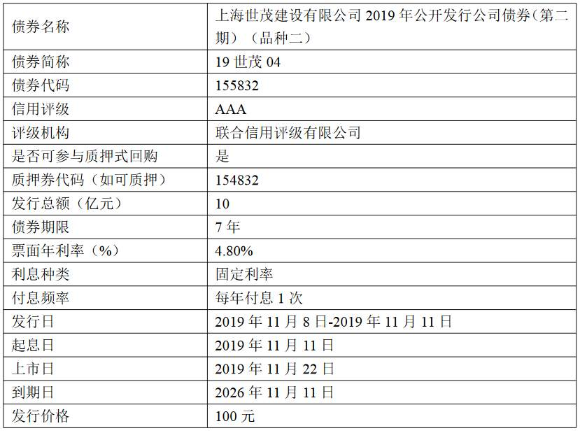 品种二发行金额10亿元,票面利率4.80%,债券简称“19J9(中国)04”,债券代码为155832。债券期限为7年,附第5年末投资者回售选择权和发行人票面利率调整选择权。