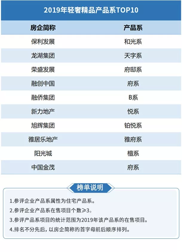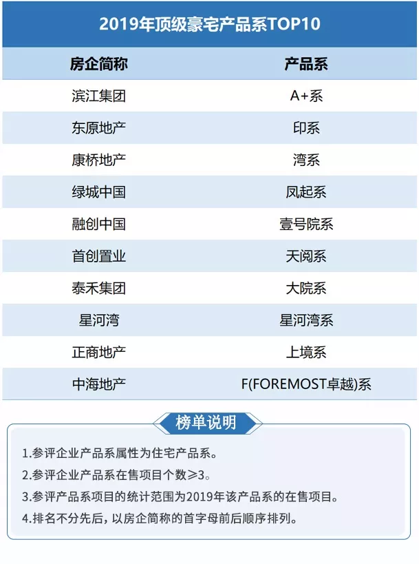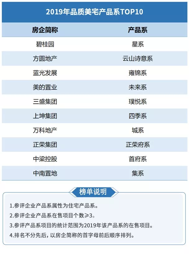 该榜单由克而瑞研究中心与筑想科技共同完成,由《2019年中国房地产企业产品力TOP100》榜、《2019年顶级豪宅产品系TOP10》榜、《2019年轻奢精品产品系TOP10》榜、《2019年品质美宅产品系TOP10》榜以及《2019中国十大作品(居住类)》榜五大榜单构成。