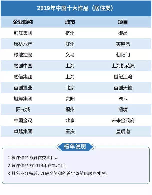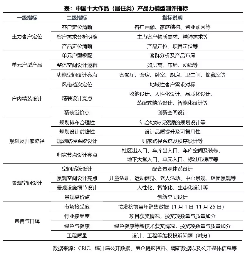 十大作品反映的是项目在“主力客户定位”、“单元户型产品”、“户内精装设计”、“规划及归家路径”、“景观空间设计”、“宣传与口碑”等指标的能力,体现是对项目客群把握能力、户型设计能力、社区规划能力、对营销能力以及设计建筑的技术能力,是对项目更加整体性的评判。