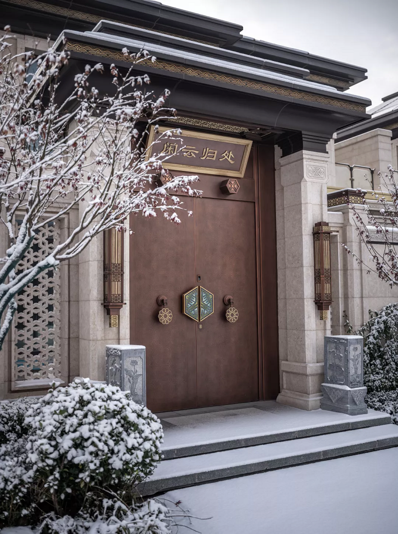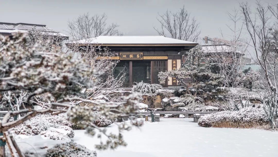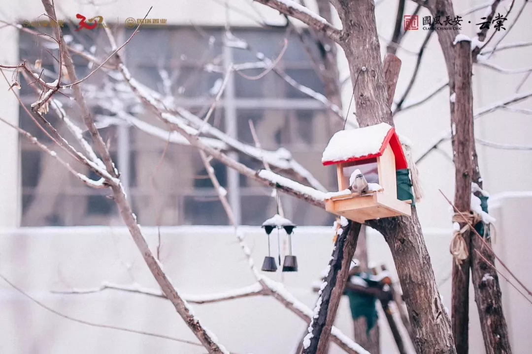 琼花点缀了屋檐,楼宇润色了纯白