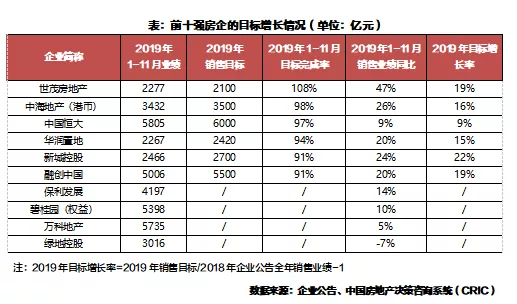 2019年只剩下最后一周,也是房企冲刺全年业绩目标的最后时刻。在今年市场遇冷,地产行业整体增速放缓的情况下,企业全年的业绩目标一方面可以反应企业年初对全年市场的预期,另外一方面也是对自身一年来的综合运营能力的考核。
