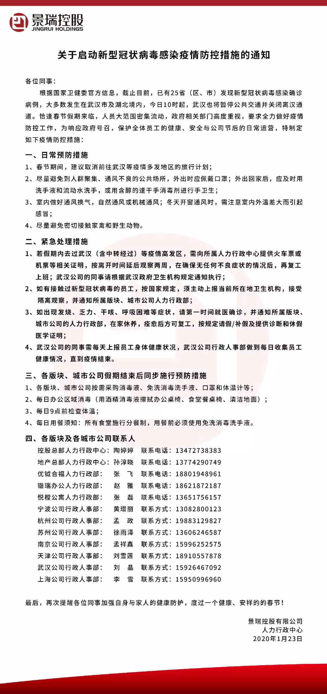 景瑞地产则制定出了一份非常详细的疫情防控措施通知,要求: