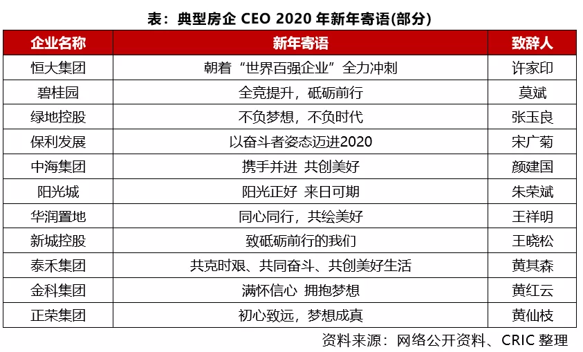 2020伊始,万象更新,各大房企CEO纷纷奉上新年寄语,承上启下,盘点过去一年成绩,同时提出来年发展愿景。