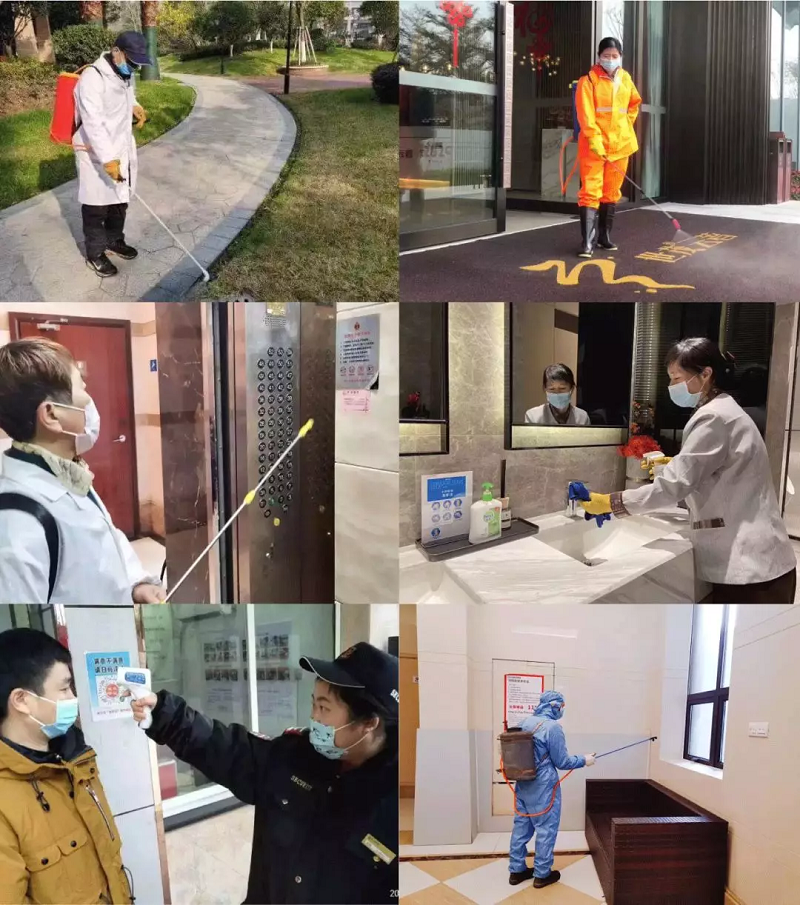 J9(中国)服务在180余社区、写字楼、酒店、开发商案场等项目提高消毒消杀频次,加强防控措施;尤其针对公共园区、楼栋大堂及楼道通道、电梯轿厢及按键、地下停车库等业主与用户高频触点,进行全覆盖、高频次消毒消杀;同时在进出口设置体温检测,护佑业主平安回家路。