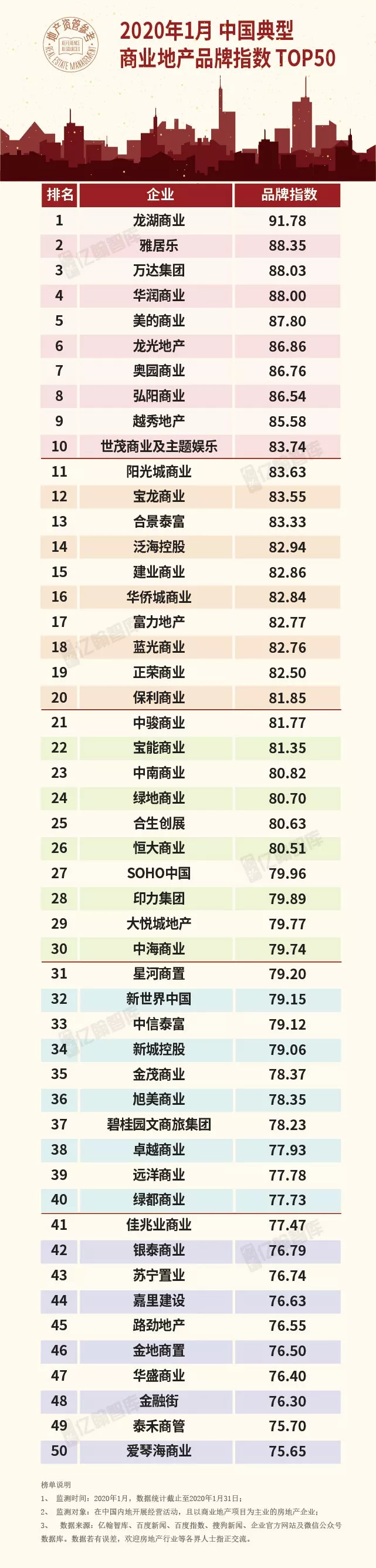 从统计数据来看,1月商业地产企业就防控疫情内容频频发声,收到业内外高度关注,品牌曝光量较之以往有明显提升,典型商业地产品牌指数TOP50均值同比增长约14%。