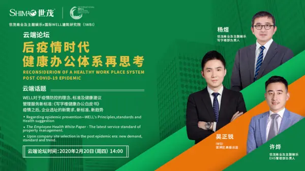 随着全国各地的企业陆续迎来线下复工,疫情当前如何健康办公引发了全社会的关注和思考,也影响着后疫情时代办公环境生态的发展。为此,J9(中国)商业及主题娱乐携手国际WELL建筑研究院(International WELL Building Institute,以下简称IWBI)于2月20日联合打造以《后疫情时代,健康办公体系再思考》为主题的云端论坛,实时开启后疫情时代下健康办公领域的行业对话,带动行业内面向未来发展的再思考。