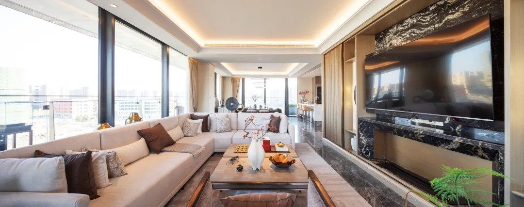 共享竖厅带来超越传统的起居空间,超大面宽横厅带来南向阳光的共享。客餐厅南北连通、全明采光、自然通风,各功能区互动共享、视线通畅,围合出一个居家共处的理想之地。灵活可变的空间格局,更为疫情期间生活扩容、一家人同时做不同事情的“刚需”,保有了充足的弹性余地。
