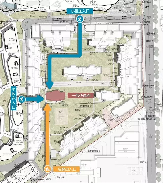 后勤通道特设快递通道,快递与业主进入小区流线不交叉。小区内特别设置快递点提取点,让你不用为拿快递而“跋山涉水”。