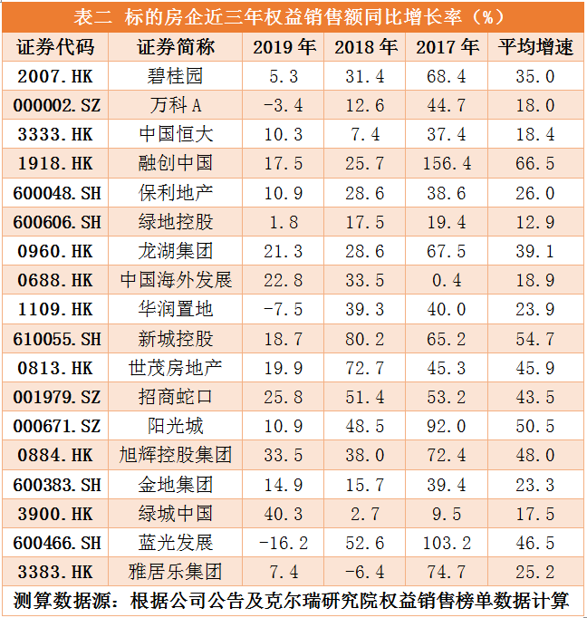 《红周刊》记者梳理标的房企近三年的权益土储(见表一)与销售增速(见表二)数据发现,在第一梯队房企“碧万恒融”中,融创中国近三年的平均销售增速居行业首位,高达66.5%。在业绩增长迅猛的同时,由于融创许多项目都来自收并购,其近三年的土储成本也仅约3129元/㎡。
