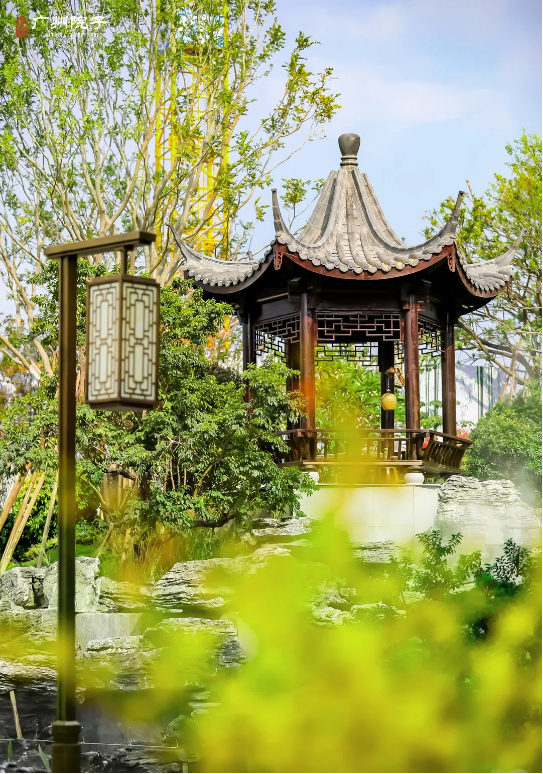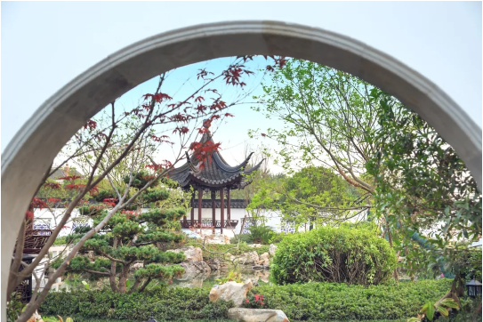 霁清轩地近园中后围墙,建筑构造极其别致。小院落主要部分是一座四面明窗当风的轩,附近有一株盘旋而上的二三百年老松树,傍着一个孤立的亭子,在亭子上可俯瞰横贯院中的小小溪流。读过《红楼梦》的人,如偶然到了这个地方,会联想起当年书中那个性情乖巧,虽出家还多世俗幻念的女尼妙玉的住处。还有“史湘云醉眠芍药茵”的故事,也可能会发生在霁清轩大门前边那个芍药花坛前一点。