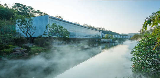 两岸全是青青的山,中间是一条清浅的水,有时候过一个沙洲,洲上的桃花菜花,还有许多不晓得名字的白色的花,正在喧闹着春暮,吸引着蜂蝶。抬起头来一看,四面的水光山色又忽而变了样子了。清清的一条浅水,比前又窄了几分,四围的山包得格外的紧了,仿佛是前无去路的样子。并且山容峻削,看去觉得格外的瘦格外的高。