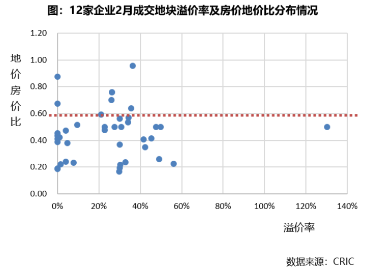从企业角度来看,中梁、德信、龙光等2月份投资的地块整体地价房价比处于0.3的警戒线之下,虽然有一定溢价,但盈利空间尚可。