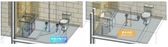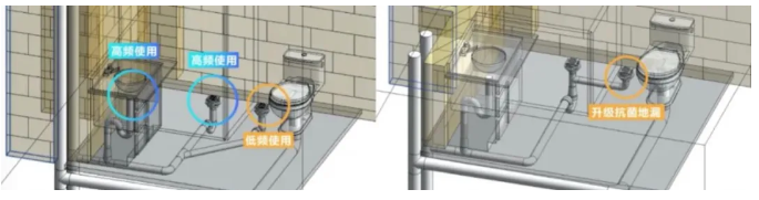 同时,将干湿区的分散式水封设计,改良为干区地漏和洗手盆或淋浴间共用集中水封,这样能防止污水、污气的互串影响,防止病菌扩散。