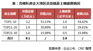 TOP30房企大湾区总货值达6.1万亿元,龙头房企重仓湾区布局有道。