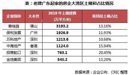 以保利为例,自1992年于广州成立以来,经过多年发展其已形成了完善的全国化产业布局优势,其中在粤港澳地区,保利发展已实现了除澳门、香港外的湾区城市全覆盖。截止至2019年,保利发展于粤港澳地区的土地储备继续增长,拥有总货值3409.4亿元,土储建面达1926.9万平米,皆位于货值榜及土储建面榜的5强之内。