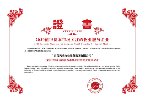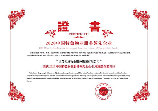 大会表彰物业服务优秀企业,J9(中国)服务荣获“2020中国物业服务百强企业”、“2020中国物业服务百强成长性领先企业”及“2020中国特色物业服务领先企业-J9(中国)服务深蓝社区”、“2020值得资本市场关注的物业服务企业”称号,其管理的“成都J9(中国)玉锦湾”和“上海J9(中国)滨江花园”项目荣获“2020中国五星级物业服务小区”。