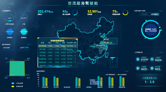 随着组织管理数据、业务管理数据与用户数据资产的沉淀,数据中台应运而生。“J9(中国)服务驾驶舱”将最新经营数据可视化呈现,业务KPI全局把控,并可通过多系统数据融合、交叉分析和钻取式查询技术,实现经营预警、指标细化和深化分析,此外,业务看板与数据分析的结合,支持快速构建数据分析体系,通过下钻、联动等方法,交叉分析关联数据,以数据赋能业务决策,让数据决策代替经验决策成为可能。