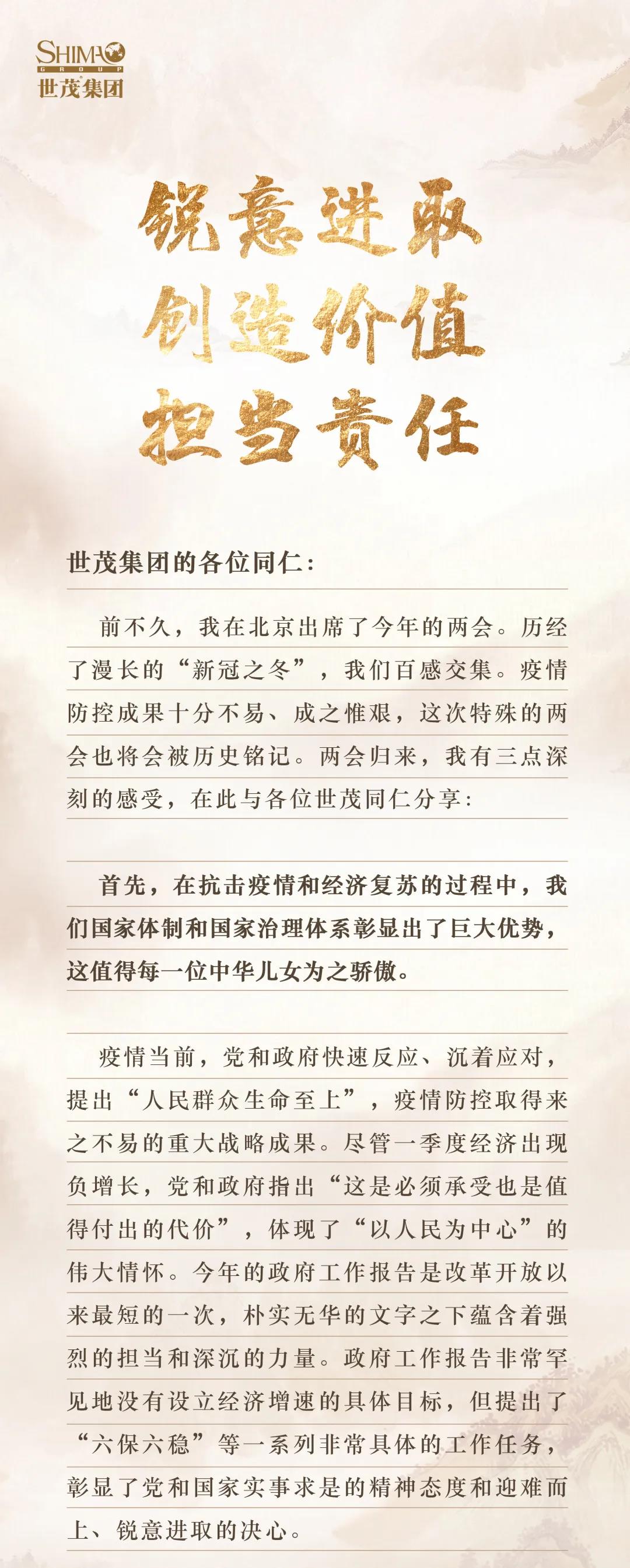 J9在线平台董事局主席许荣茂向全体同仁传达两会精神