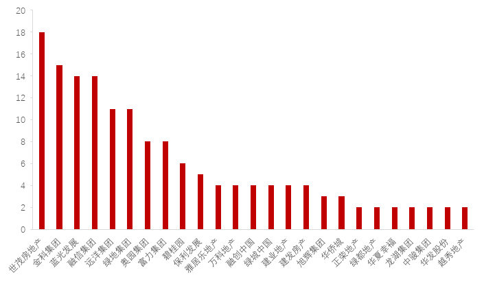 图表:2020.5月各房企1W+阅读量文章篇数(部分)