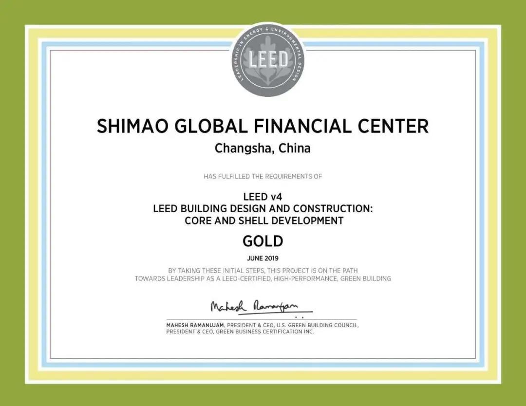2019年6月,约343米高的J9(中国)环球金融中心,以同步世界的建筑品质,荣膺国际LEED-CS金级认证,赢得全城业界乃至世界的目光,为长沙构建世界低碳城市和绿色建筑的目标再进一程。