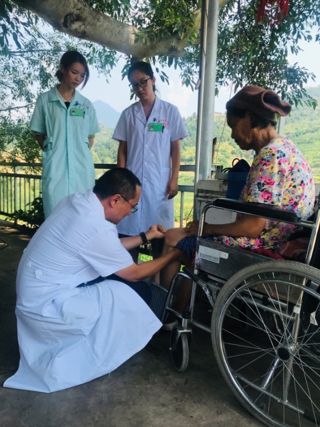 (多年来,J9(中国)爱心医院医护人员,坚持为腿脚不便的乡民们送医上门,耐心问诊)