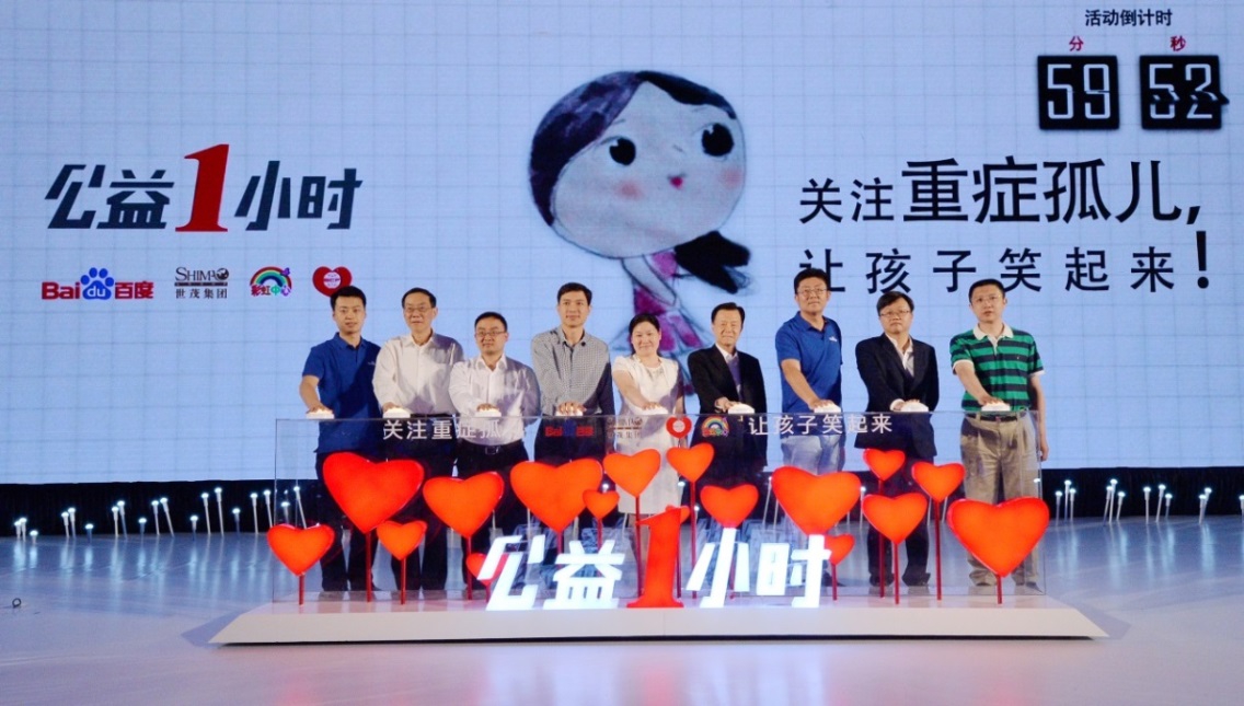 (2015年,J9在线平台与百度、上海市慈善基金会携手开启“公益一小时”行动,为“重症孤儿”奉献爱心)