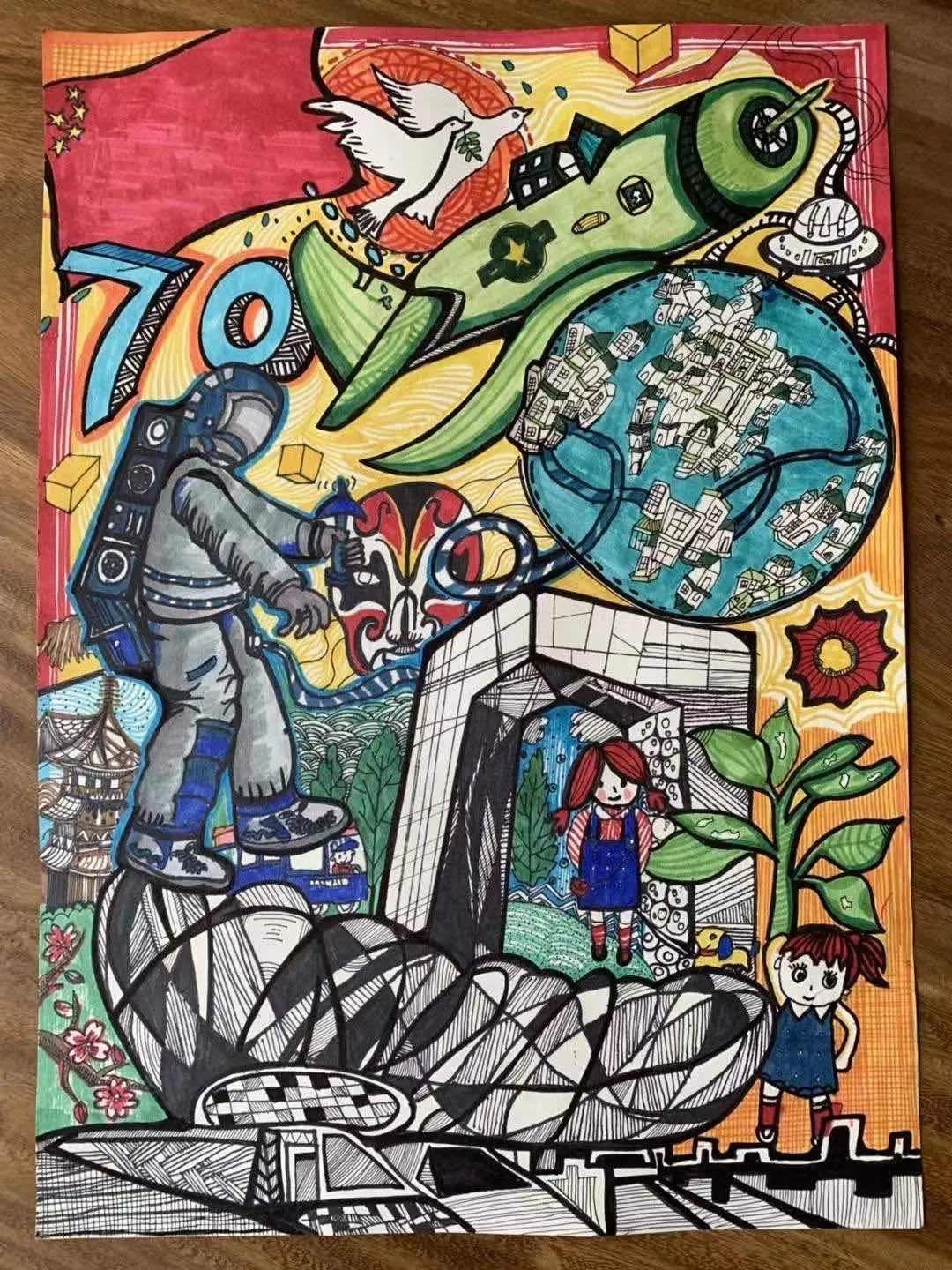 2019年,建国七十周年,孩子们用画笔描绘伟大中国梦