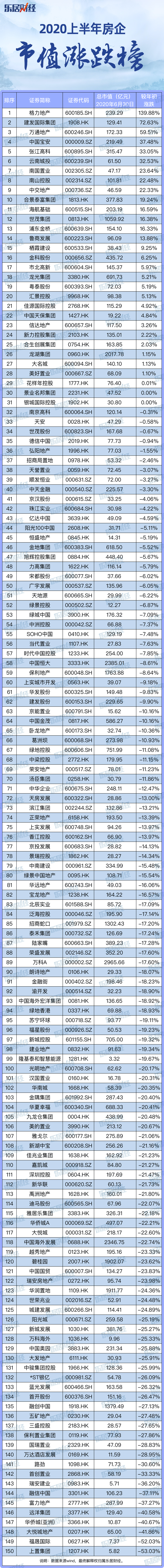 2020上半年,新冠疫情、大国摩擦升级等大环境的变量,让资本市场“胆战心惊”。截至昨日,2020上半年上市房企最新的市值排行榜已经产生。