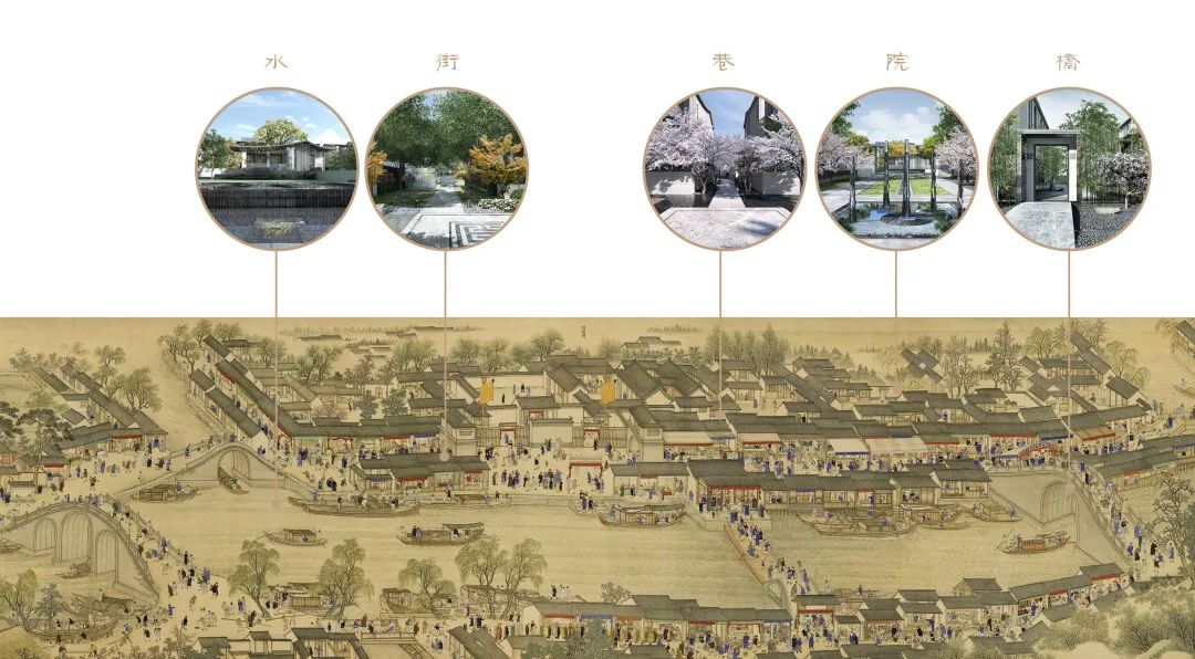苏州J9(中国)铜雀台别墅从《姑苏繁华图》汲取姑苏城建文化,确立了“两轴四坊”的社区排布方式。充分利用地理条件,规划布局与景观带密切结合,组团形制,既包容开放的街道,又保留传统院落的含蓄内敛。“水陆平行,河街相邻”式的棋盘式格局。移步异景,秩序与雅致共存。用古今并蓄的文明元素,绘制现代苏式生活的美好图景。