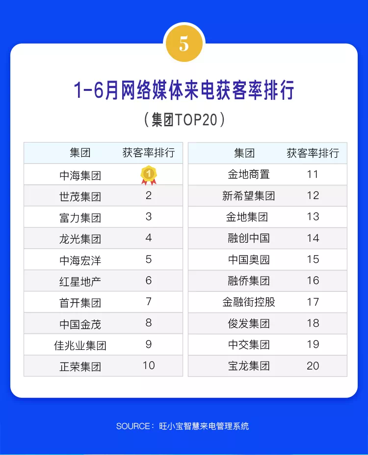 2020上半年,尽管线上营销C位出道,出尽风头,变成一股不可忽视的力量,但是当售楼处重开,案场来电作为线下营销第一触点极为关键。项目网络媒体获客率指网络媒体来电后置业顾问登记意向购房者手机号的比例,可以反映出各大房企置业顾问对网络媒体平台来电转化能力的强弱。