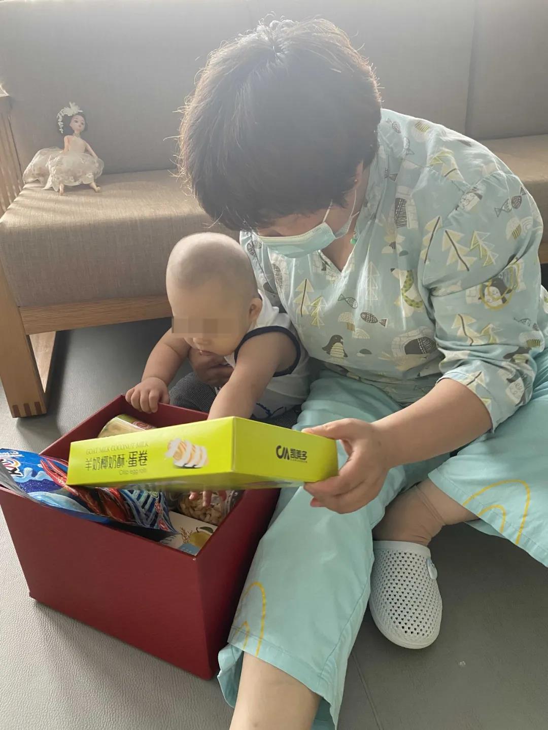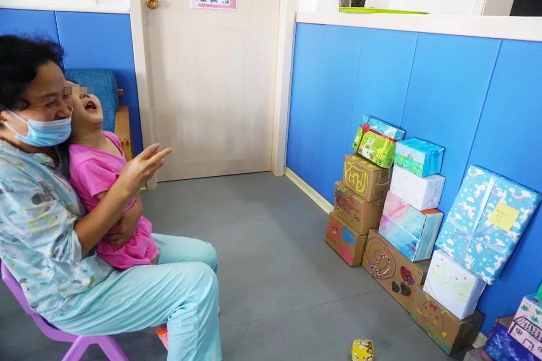活动有条不紊地进行着,小朋友们头一次以这样的方式获得礼物,真是既紧张又刺激:灵儿拆到了一条漂亮的红色裙子,虽然有些无奈,却仍大方地送给了姐姐彤彤;比起拆礼物,小柠檬更喜欢扔沙包,跟着妈妈扔得不亦乐乎;小晏无法坐起来,手也不能抓握,妈妈就抱起他,来到盲盒墙前玩起“点兵点将”;小宝则彻底坐实了“小吃货”的名号,抱着抽中的满满一大盒零食,仿佛那年画儿里的小福娃……