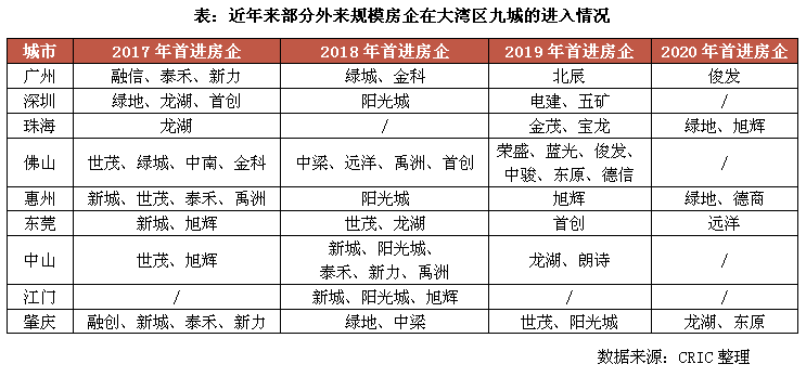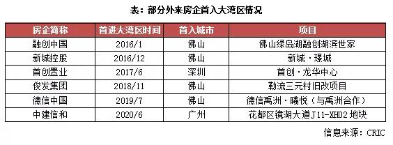 3、近两年新进驻的外来房企,布局大湾区战略意义更强