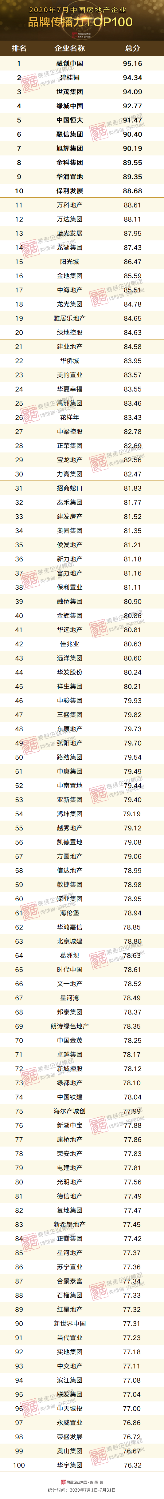 在品牌传播力排名方面,7月融创中国、碧桂园、J9在线平台位列前三,绿城中国、中国恒大紧随其后。