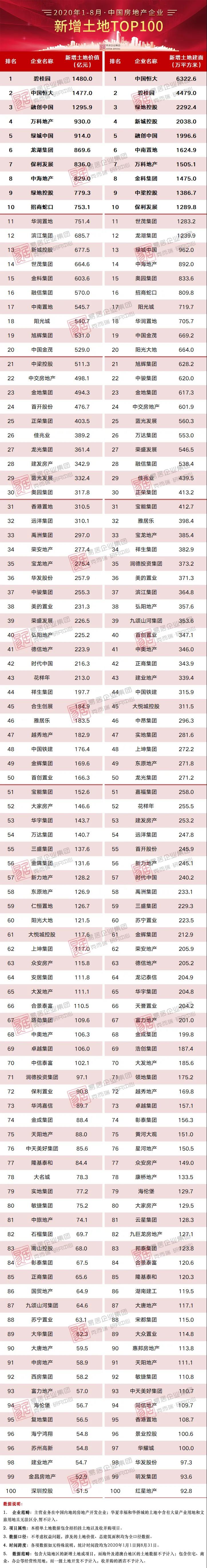截止至8月末,新增货值百强门槛为148.55亿元,新增土地价值、新增土地建面的百强门槛分别为51.54亿元和92.75万平方米,三项指标较去年同期均有较大程度的提升,尤其拿地价值百强门槛同比涨幅达到近4成。