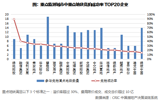 从8月竞拍情况来看,重点监测的企业中有6成未参与重点地块的竞拍,27%企业参拍次数在5次以内,仅有9%的企业积极参与了10次以上。其中,重点地块竞拍成功率较高的企业有绿地、融信、保利、荣安等,竞拍成功率达到3成以上。整体而言企业的参拍积极性较之前有所下降。