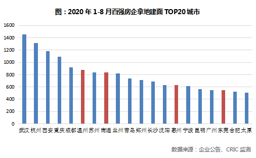 投资结构依旧保持稳定,长三角、中西部仍然是企业重点投资区域,武汉重新成为百强房企年内拿地最多的城市,其土地市场在疫情过后已明显修复。