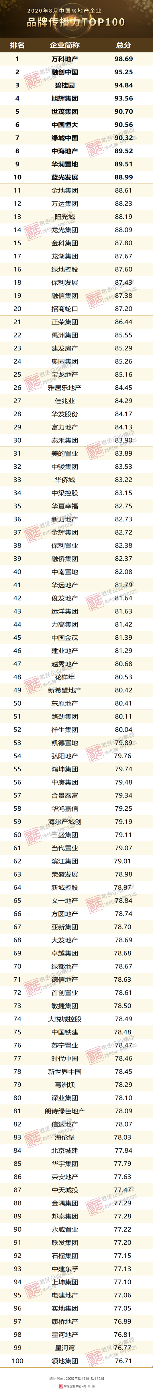 本榜单由克而瑞研究中心独家发布,测评研究对象为所有房地产开发企业。通过发布房企“品牌传播力”榜单,我们能够科学地评价和度量不同规模的房企品牌形象塑造、宣传推广策略、公共关系维护等能力,以及运营带来的品牌传播力,帮助房企找准合适的品牌定位和发展方向 。