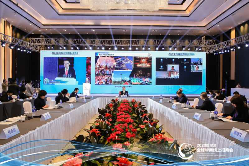 左上圖:聚合僑商資源,助力冰城發展,哈爾濱全球華商線上招商會現場。