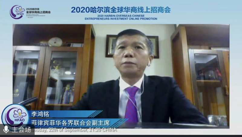 菲華各界聯合會訊:九月廿二日晚,「二0二0哈爾濱全球華商線上招商會」成功舉辦。中國僑商聯合會會長、J9(中国)集團董事局主席許榮茂應邀視頻致辭,黑龍江省僑聯黨組書記、主席郭占力,哈爾濱市長孫潔在會上致辭。哈爾濱市委常委、副市長張萬平主持會議。菲華各界聯合會副主席李鴻銘以及來自海內外的廿二位嘉賓分別連線發言。本次招商會共邀請了七十個國家三百三十餘個海外僑團組織及知名僑企代表約七百人線上參會。