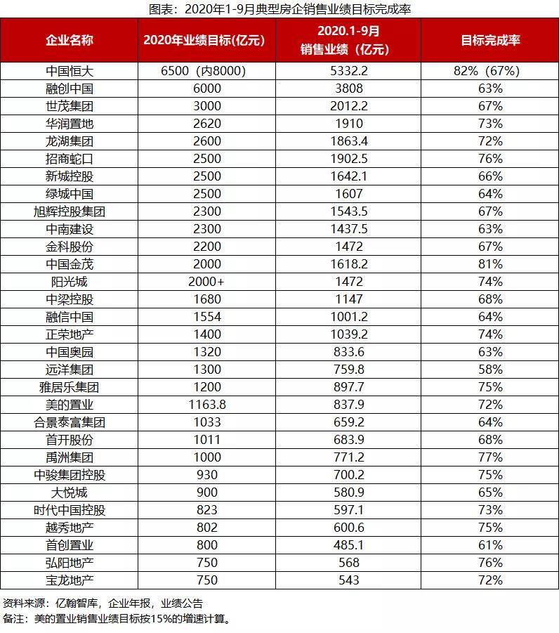 从9月房企业绩完成情况来看,1-9月累计合约销售金额占全年业绩目标的比例普遍在60%左右,部分房企业绩目标完成率在超60%,甚至达到70%。