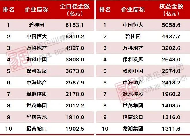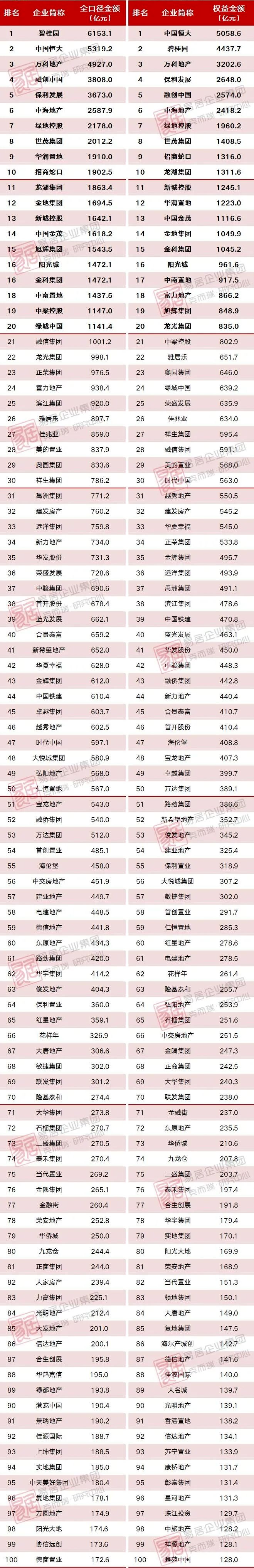2、招商蛇口进入行业10强,其中全口径榜位列第10,权益榜位列第9,今年招商蛇口业绩明显提速;
