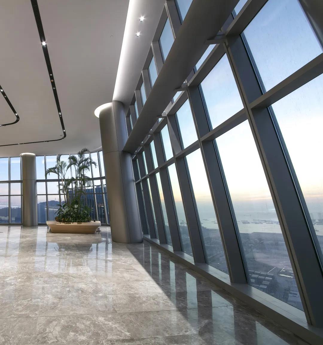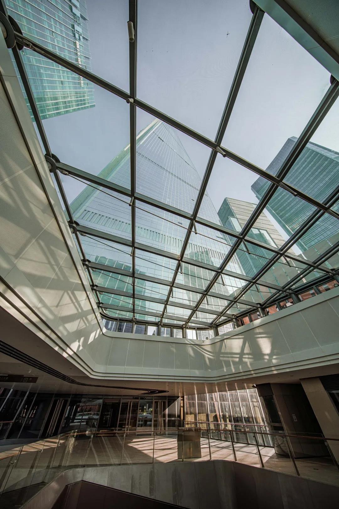 透过空中大堂的玻璃幕墙