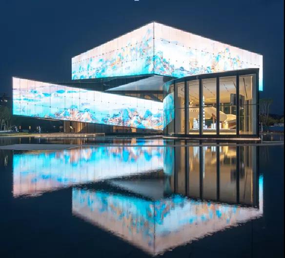 动态山水长卷旋绕建筑周圈