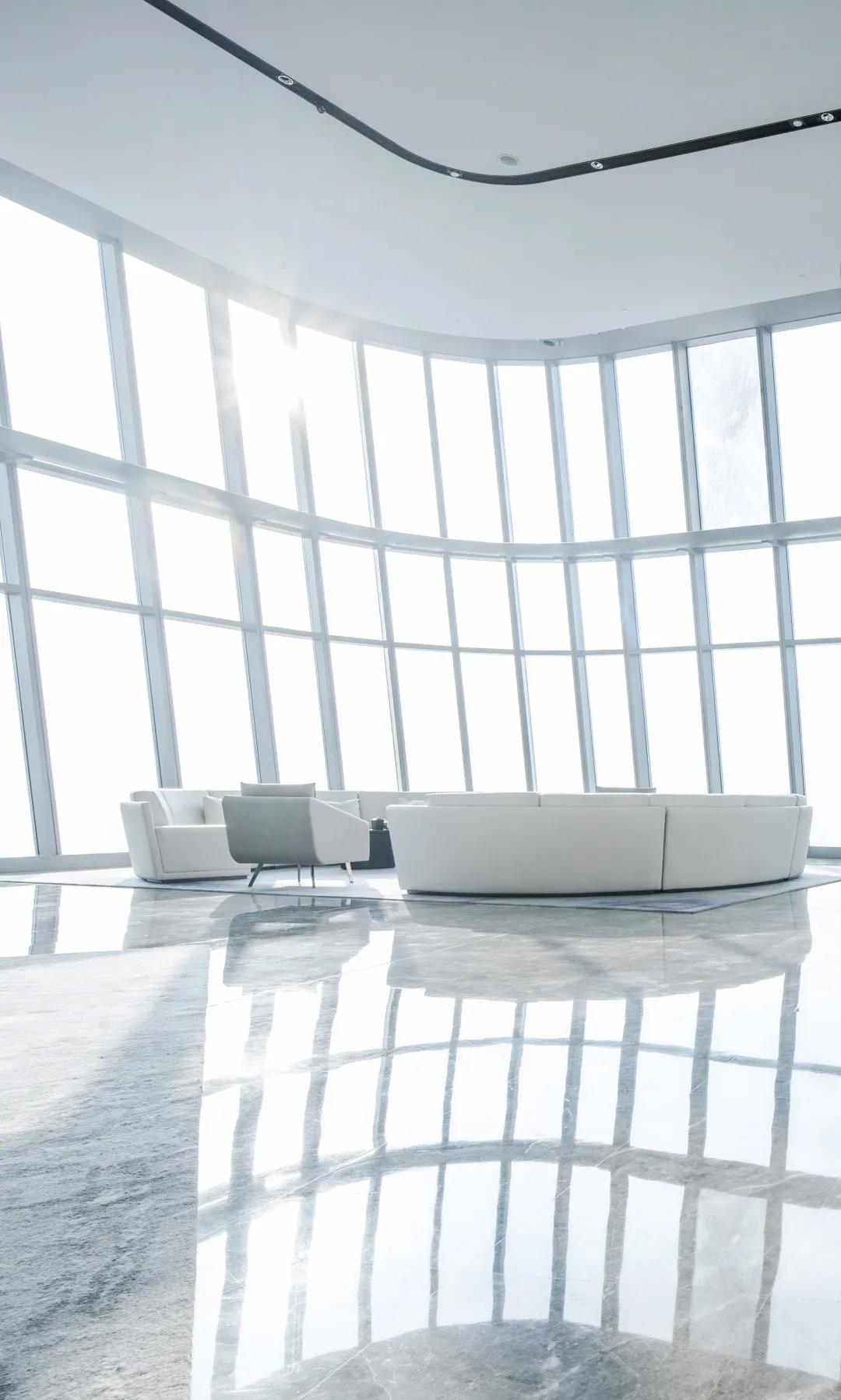 与楼体外观的曲线设计相互呼应
